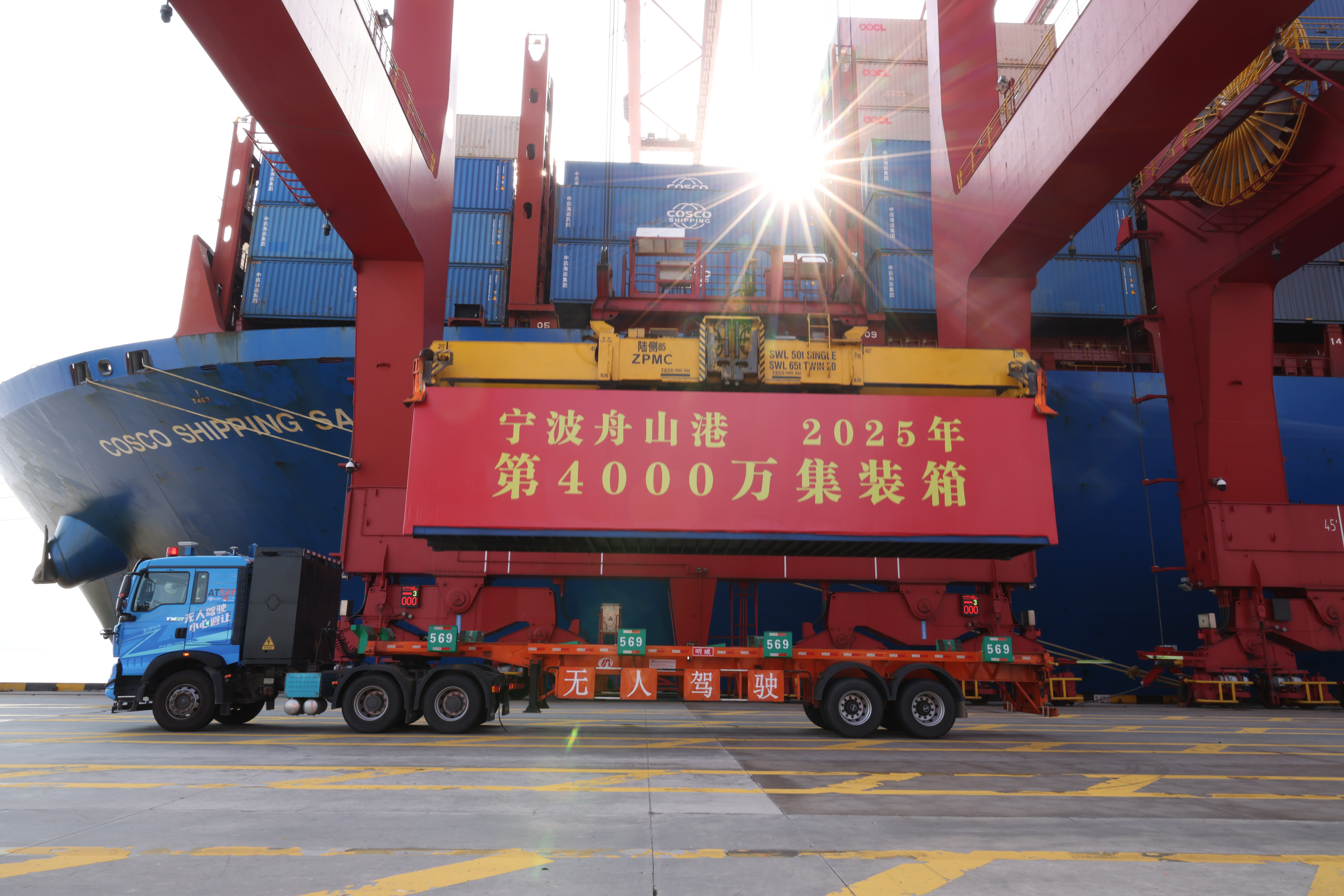 12月2日,梅山港的一个身披红妆的集装箱,被远控桥吊稳稳安置于“中远海运人马座”轮上。这一刻,意味着宁波港年集装箱吞吐量,首次突破4000万标准箱,成为继上海港、新加坡港之后第三个跻身“4000万俱乐部”的大港。